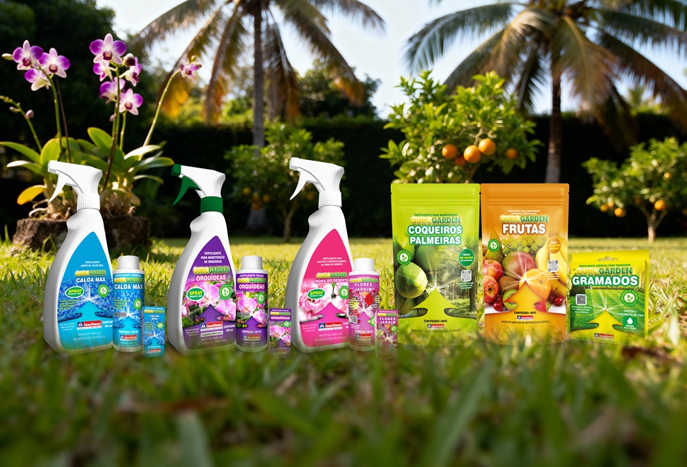 A linha Ourogarden oferece soluções em formatos líquido, sólido e concentrado para manter o jardim protegido contra pragas e nutrido com eficiência